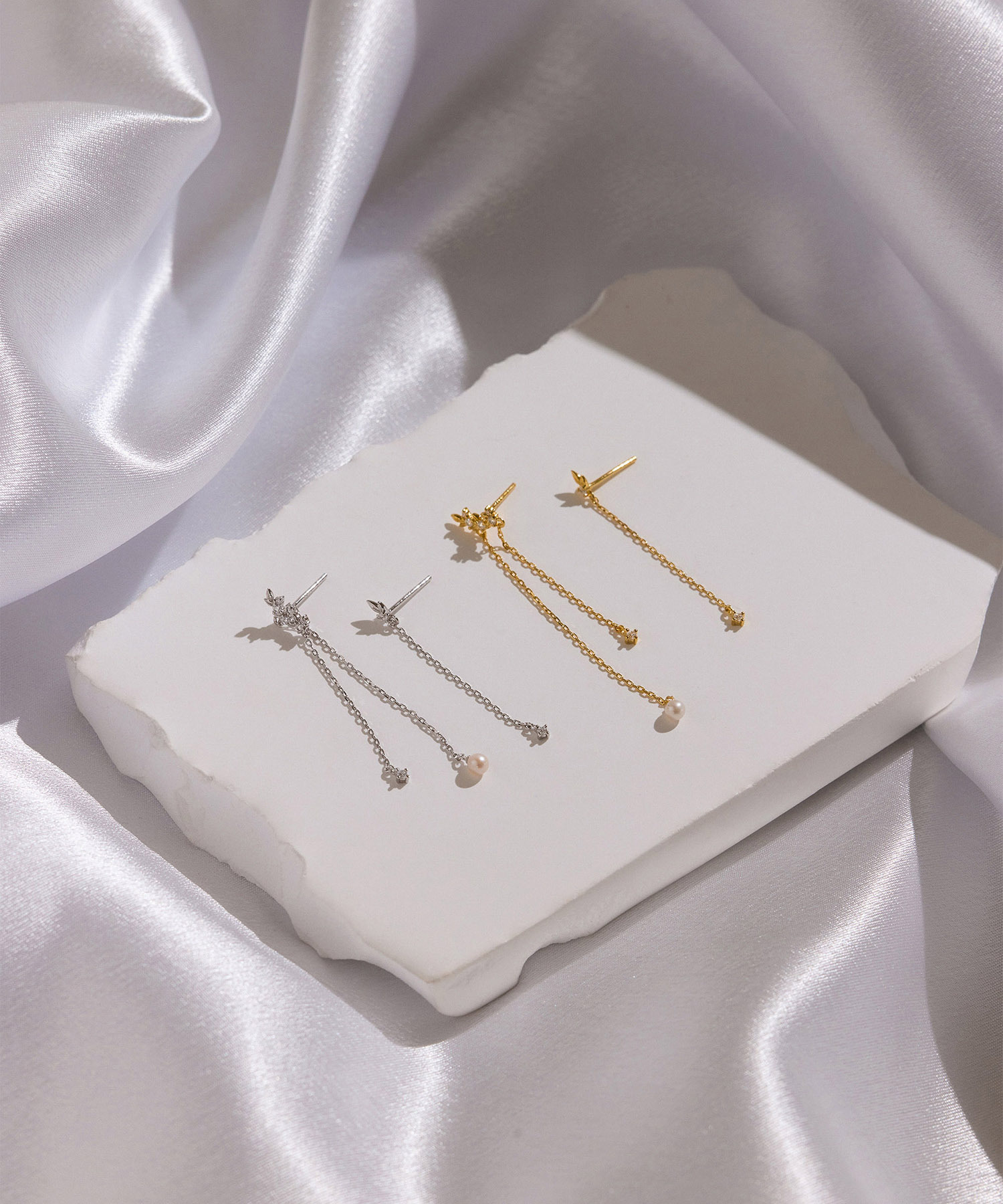 安心の低アレルギー素材、シルバー925を使用。さらに、プレミアムジュエリー技術による18K金厚メッキを施し、5A級ジルコニアを職人の繊細な研磨技術で丁寧に鏤めています。