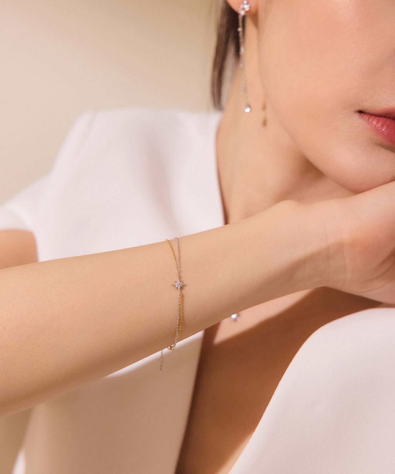 安心の低アレルギー素材、シルバー925を使用。さらに、プレミアムジュエリー技術による18K金厚メッキを施し、5A級ジルコニアを職人の繊細な研磨技術で丁寧に鏤めています。
